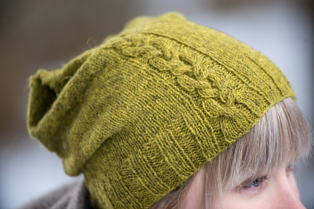 I wanted to keep this design simple. Mostly stockinette, some cables to keep the knitting interesting, and finally, a fun envelope bind-off which I learned while working on another hat pattern, Hiekkamyrsky.